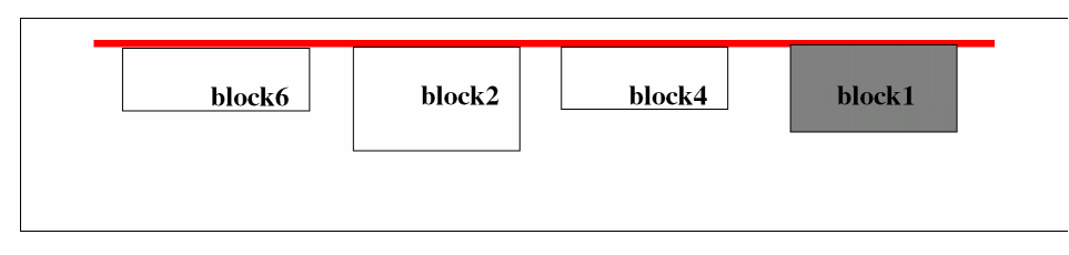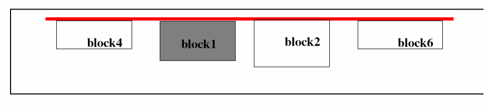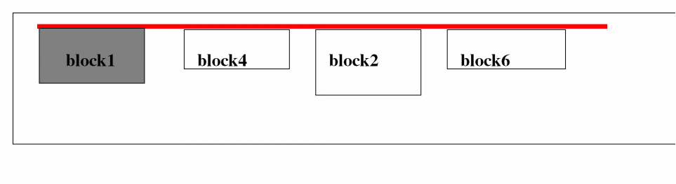 This is because block1 is the reference block and the top edge of block1 is aligned with the top edge of block4, block2, and block6. The target blocks are placed in the specified order on the right side of the reference block because the relative position parameter is set to right.