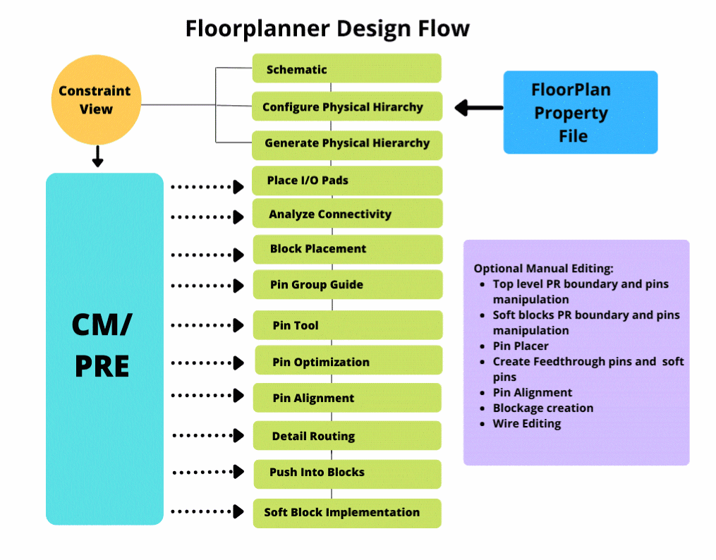 The floorplanning design flow consists of the following steps. Each of these steps is described later in this guide in detail.
