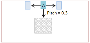 In the following design, the pitch of pin A is 0.3. A pitch can have value zero. Assumption is that the pitch for the neighboring pins or objects is zero. Pins are placed such that adjacent pins or objects are separated by a minimum distance of 0.3, which is the pin pitch value.