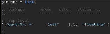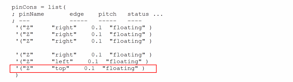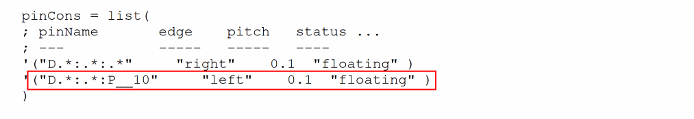 '("Terminal_Name:Pin_Name:PinFig_Name" "Pin_Edge" Pin_Pitch "Pin_Status")