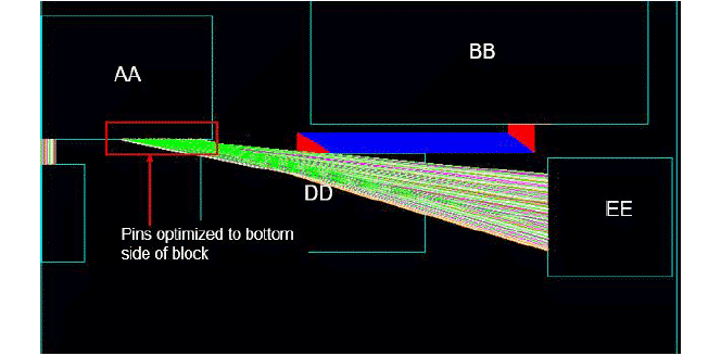 The following image shows the result of standard wire length-based pin optimization on a design.