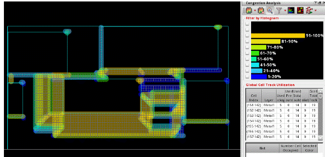 The following image shows the result of congestion analysis after running congestion-aware pin optimizer.