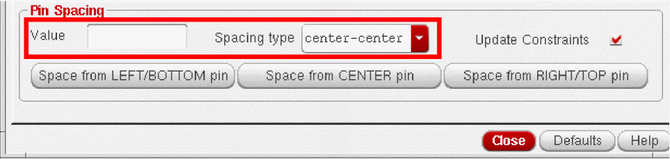 - In the Pin Spacing group box, type the spacing you require in the Value field, choose the type of spacing from the Spacing type pull down.