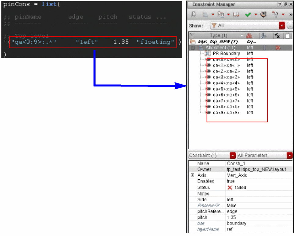 Creating a Pin Constraints File: A pin constraints file is a SKILL file with the following constraints entered in a SKILL list: