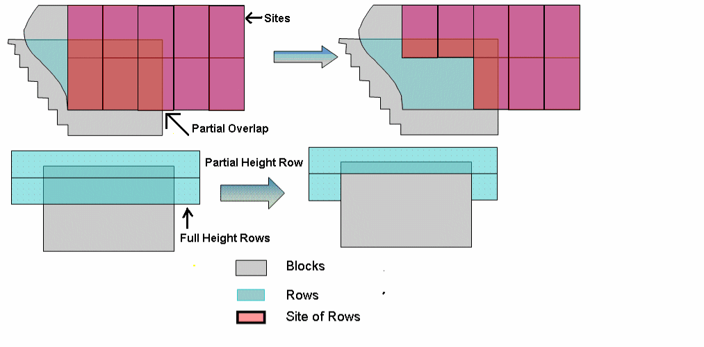 - Select Push Row(s) inside Soft Block(s) to push the standard and custom rows inside the soft block. In case of standard rows, the overlapping part of the row with integer number of sites is pushed.