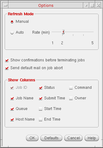 You can see the latest information in the Jobs table view by refreshing the display. Job Monitor has two refresh modes, Manual and Auto. Auto refresh mode lets you set specific time intervals for the information to be reloaded. Manual refresh mode lets you reload the information on demand.