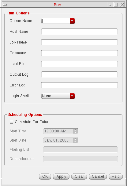 - From the Queue Name drop-down list box, choose the queue in which you want to run the job or leave it blank for the job to run in the DEFAULT queue.