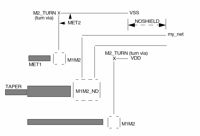 For information on and examples of via cut patterns, see “Creating Via Cut Patterns”.