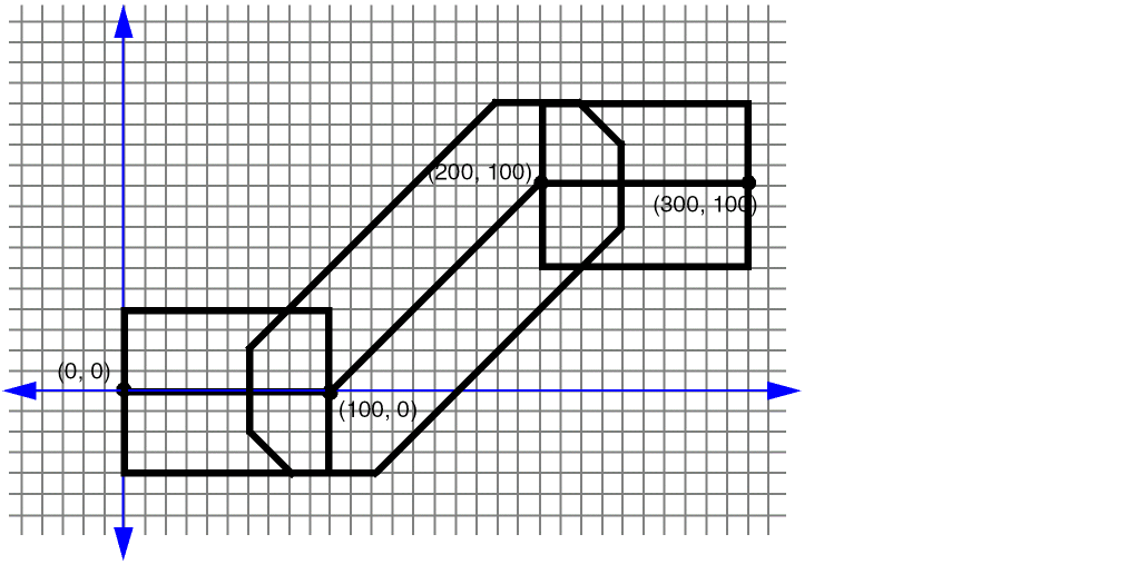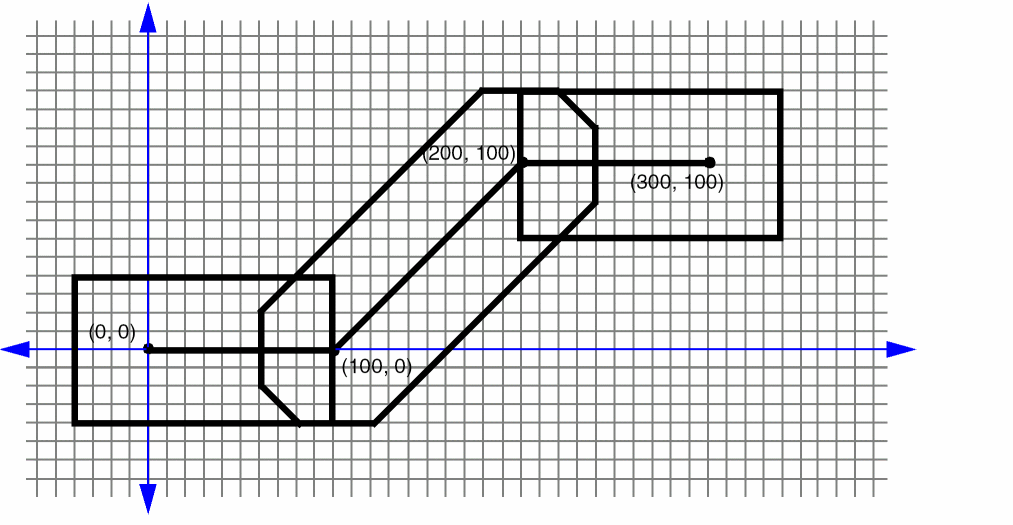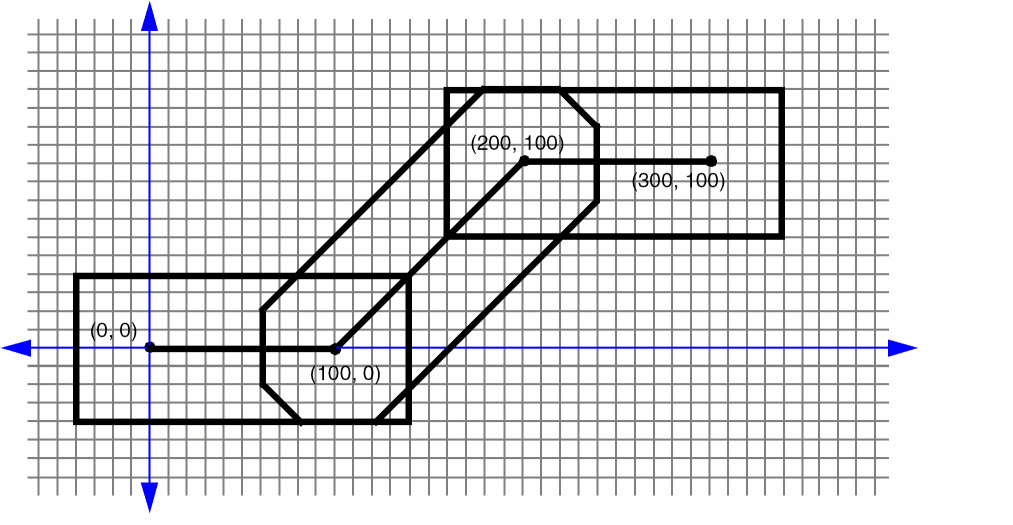 The same via rule with the following ORIGIN parameter shifts all of the metal and cut rectangles by 10 in the x direction, and by -10 in the y direction (see Figure 6-15):