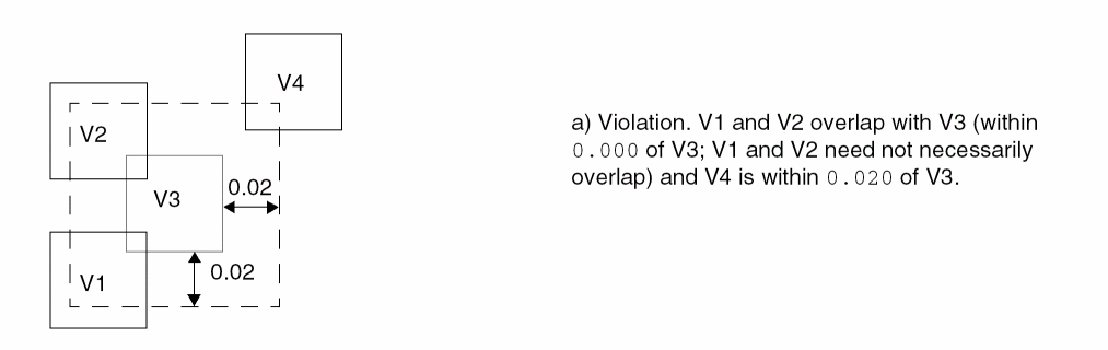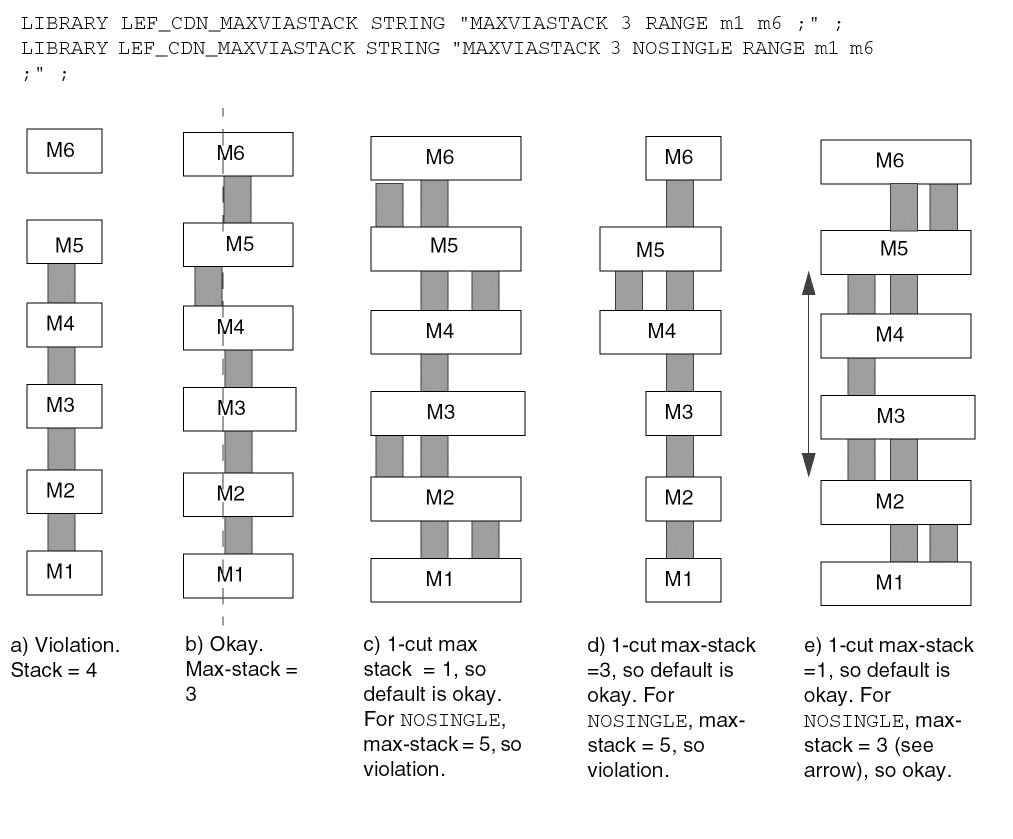 VIARULE GENERATE is center-to-center spacing, whereas the spacing in ADJACENTCUTS is edge-to-edge. Defines a formula for generating the appropriate via.