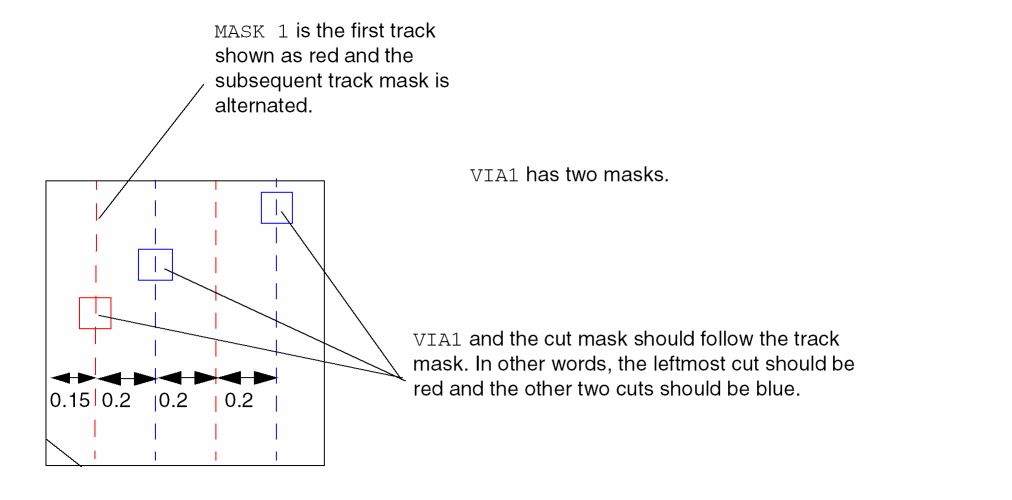 RECT MASK 1 -0.2 -0.2 0.2 0.2 ; #first cut on mask 1