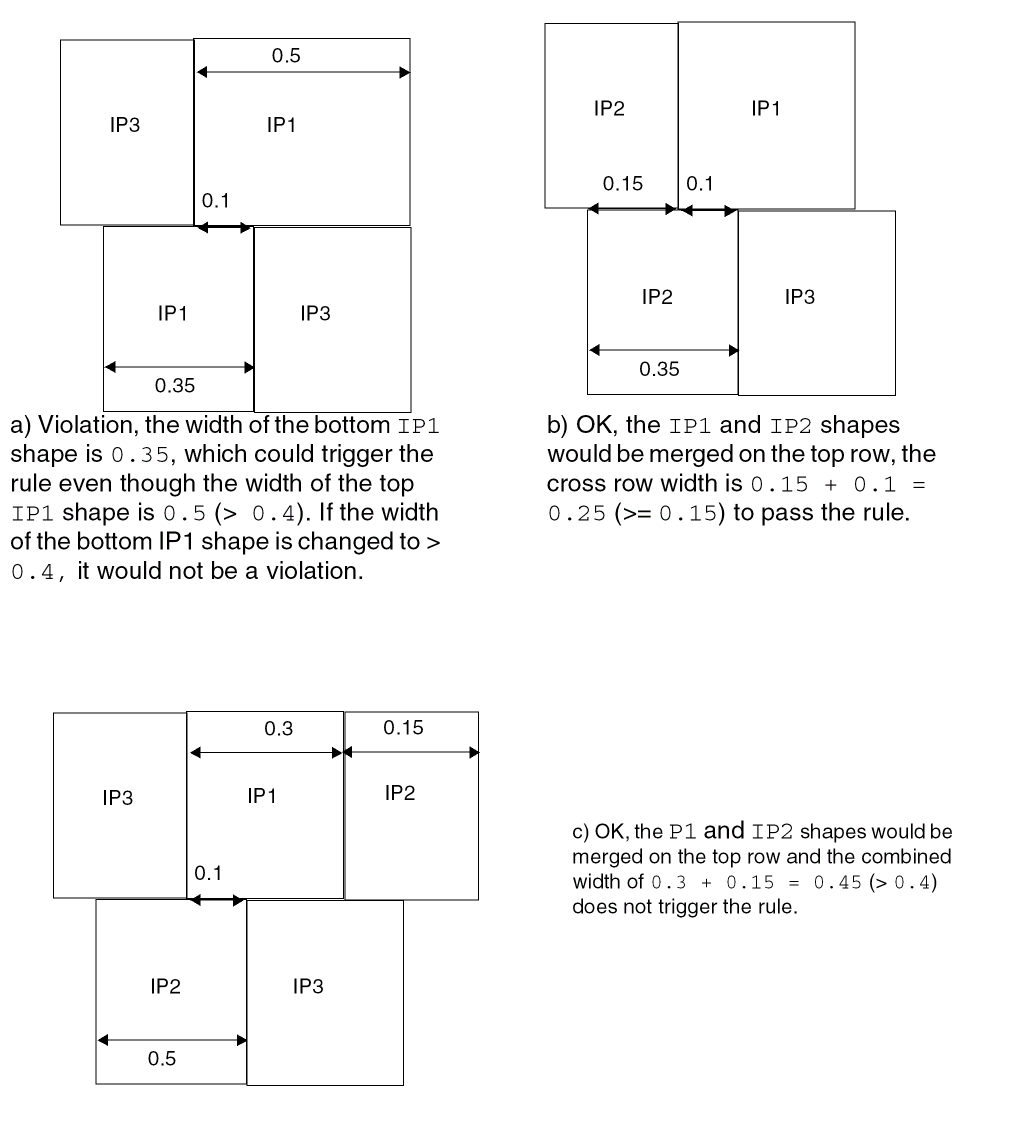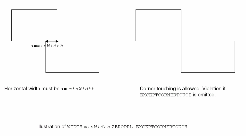 Figure 3-9 Example of the Width Rule with EXCEPTCORNERTOUCH