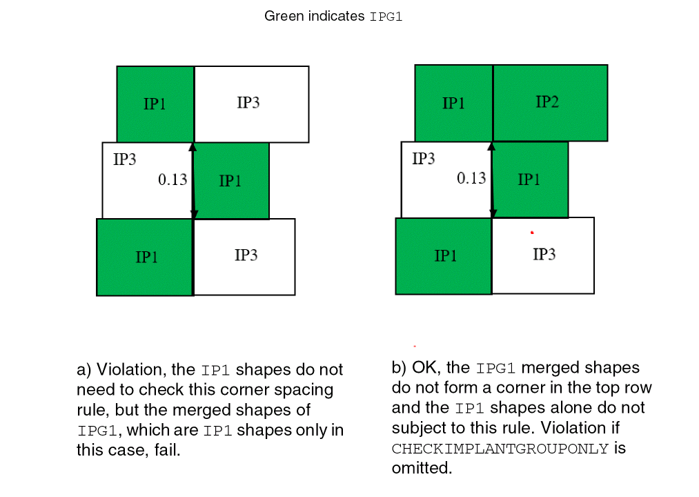 Figure 3-4 Example of the Corner Spacing Rule with CHECKIMPLANTGROUPONLY