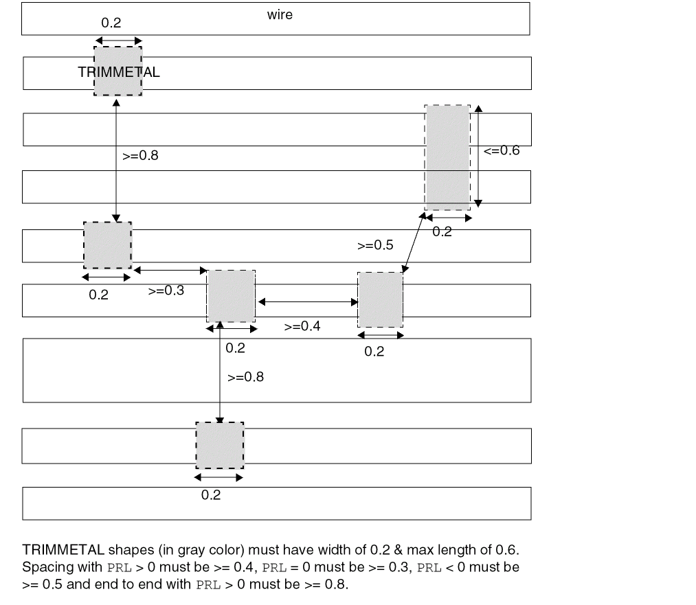 Trimmed metal rules can be used to specify the metal layer that the shapes on the TRIMMETAL layer tries to trim.