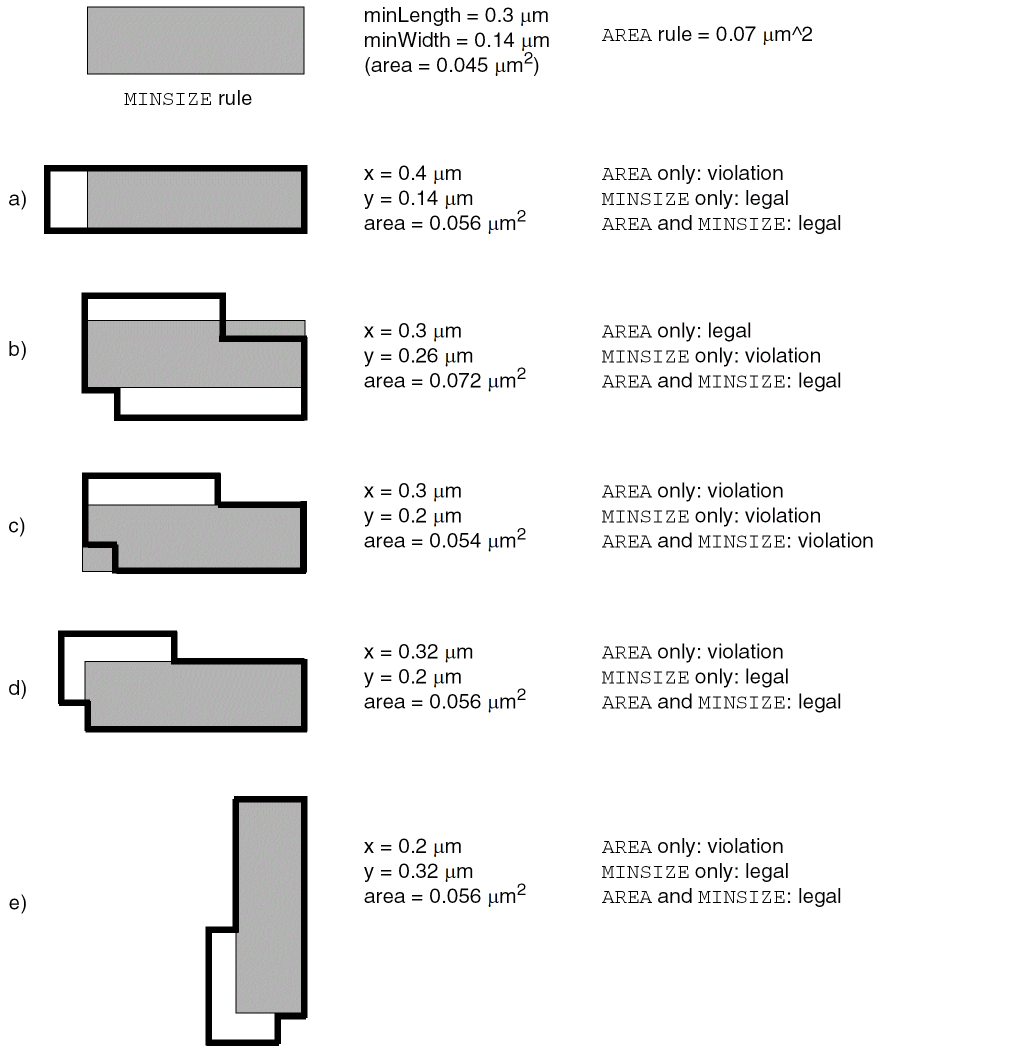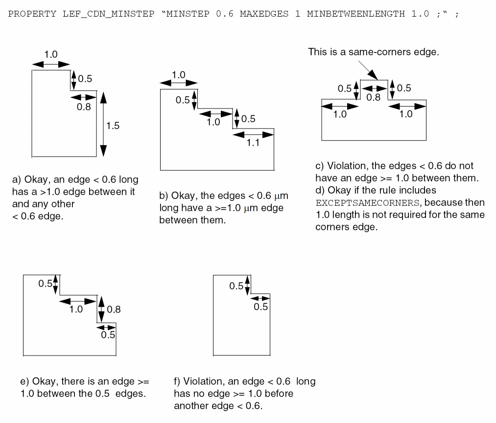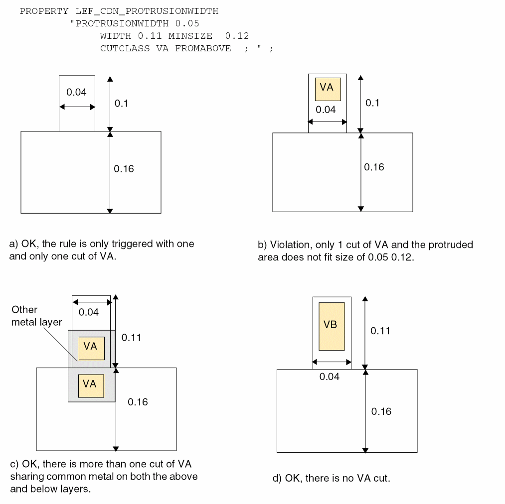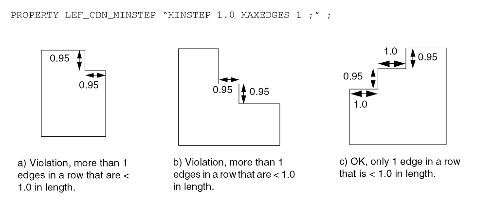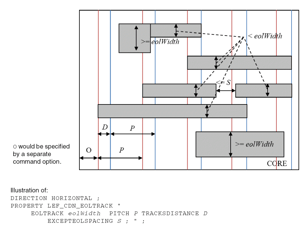 LAYERlayerNameTYPE ROUTING ; [MANUFACTURINGGRIDvalue ;] [MASKmaskNum;] DIRECTION {HORIZONTAL | VERTICAL | DIAG45 | DIAG135} ; PITCH {distance|xDistanceyDistance} ; [DIAGPITCH {distance|diag45Distancediag135Distance} ;] WIDTHdefaultWidth; [OFFSET {distance|xDistanceyDistance} ;] [DIAGWIDTHdiagWidth;] [DIAGSPACINGdiagSpacing;] [DIAGMINEDGELENGTHdiagLength;] [AREAminArea;] [MINSIZEminWidthminLength[minWidth2minLength2] ... ;] [[SPACINGminSpacing[ RANGEminWidth maxWidth[ INFLUENCEvalue[RANGEstubMinWidthstubMaxWidth] | RANGEminWidth maxWidth] | ENDOFLINEeolWidthWITHINeolWithin[PARALLELEDGEparSpaceWITHINparWithin[TWOEDGES]] | SAMENET [PGONLY] | NOTCHLENGTHminNotchLength| ENDOFNOTCHWIDTHendOfNotchWidthNOTCHSPACINGminNotchSpacingNOTCHLENGTHminNotchLength] ;] ... [SPACINGTABLE [PARALLELRUNLENGTH {length} ... {WIDTHwidth{spacing} ...} ... ; [SPACINGTABLE INFLUENCE {WIDTHwidthWITHINdistanceSPACINGspacing} ... ;] |TWOWIDTHS {WIDTHwidth[PRLrunLength] {spacing} ...} ... ; ] ;" ;] [WIREEXTENSIONvalue; ] [MINIMUMCUTnumCutsWIDTHwidth[WITHINcutDistance] [FROMABOVE | FROMBELOW] [LENGTHlengthWITHINdistance] ;] ... [MAXWIDTHwidth;] [MINWIDTHwidth;] [MINSTEPminStepLength[ [INSIDECORNER | OUTSIDECORNER | STEP] [LENGTHSUMmaxLength] | [MAXEDGESmaxEdges] ;] [MINENCLOSEDAREAarea[WIDTHwidth] ;] ... [PROTRUSIONWIDTHwidth1LENGTHlengthWIDTHwidth2;] [RESISTANCE RPERSQvalue;] [CAPACITANCE CPERSQDISTvalue;] [HEIGHTdistance;] [THICKNESSdistance;] [SHRINKAGEdistance;] [CAPMULTIPLIERvalue;] [EDGECAPACITANCEvalue;] [MINIMUMDENSITYminDensity;] [MAXIMUMDENSITYmaxDensity;] [DENSITYCHECKWINDOWwindowLengthwindowWidth;] [DENSITYCHECKSTEPstepValue;] [FILLACTIVESPACINGspacing;] [ANTENNAMODEL {OXIDE1 | OXIDE2 | OXIDE3 | OXIDE4 | OXIDE5 | ... | OXIDE32} ;] ... [ANTENNAAREARATIOvalue;] ... [ANTENNADIFFAREARATIO {value| PWL ( (d1r1) (d2r2) ...) } ;] ... [ANTENNACUMAREARATIOvalue;] ... [ANTENNACUMDIFFAREARATIO {value| PWL ( (d1r1) (d2r2) ...) } ;] ... [ANTENNAAREAFACTORvalue[DIFFUSEONLY] ;] ... [ANTENNASIDEAREARATIOvalue;] ... [ANTENNADIFFSIDEAREARATIO {value| PWL ( (d1r1) (d2r2) ...) } ;] ... [ANTENNACUMSIDEAREARATIOvalue;] ... [ANTENNACUMDIFFSIDEAREARATIO {value| PWL ( (d1r1) (d2r2) ...) } ;] ... [ANTENNASIDEAREAFACTORvalue[DIFFUSEONLY] ;] ... [ANTENNACUMROUTINGPLUSCUT ;] [ANTENNAGATEPLUSDIFFplusDiffFactor;] [ANTENNAAREAMINUSDIFFminusDiffFactor;] [ANTENNAAREADIFFREDUCEPWL ( (diffArea1diffMetalFactor1) (diffArea2diffMetalFactor2) ...) ;] [PROPERTYpropName propVal;] ... [ACCURRENTDENSITY {PEAK | AVERAGE | RMS} {value| FREQUENCYfreq_1 freq_2 ...; [WIDTHwidth_1 width_2 ...;] TABLEENTRIESv_freq_1_width_1 v_freq_1_width_2 ...v_freq_2_width_1 v_freq_2_width_2 ...... } ;] [DCCURRENTDENSITY AVERAGE {value| WIDTHwidth_1 width_2 ...; TABLEENTRIESvalue_1 value_2 ...} ;] [PROPERTY LEF_CDN_ACCURRENTDENSITY "ACCURRENTDENSITY {PEAK | AVERAGE | RMS} [TEMPPWLtemp_1multi_1temp_2multi_2...] [HOURSPWLhours_1multi_1hours_2multi_2...] ; " ;] [PROPERTY LEF_CDN_ANTENNADIFFGATEPWL "ANTENNADIFFGATEPWL {OXIDE1 | OXIDE2 | OXIDE3 | OXIDE4 | OXIDE5 | ... | OXIDE32} ((gateArea1effectiveGateArea1) (gateArea2effectiveGateArea2) ... ) ;" ;] [PROPERTY LEF_CDN_ANTENNADIFFONLYAREARATIO “ANTENNADIFFONLYAREARATIO {OXIDE1 | OXIDE2 | OXIDE3 | OXIDE4 | OXIDE5 | ... | OXIDE32}value;..." ;] ;..." ;] [PROPERTY LEF_CDN_ANTENNADIFFPROTECTORAREARATIO “ANTENNADIFFPROTECTORAREARATIO {OXIDE1 | OXIDE2 | OXIDE3 | OXIDE4 | OXIDE5 | ...| OXIDE32}value;..." ;] [PROPERTY LEF_CDN_ANTENNAGATEPWL "ANTENNAGATEPWL {OXIDE1 | OXIDE2 | OXIDE3 | OXIDE4 | OXIDE5 | ... | OXIDE32} ((gateArea1effectiveGateArea1) (gateArea2effectiveGateArea2)... ) ;" ;] [PROPERTY LEF_CDN_ANTENNAGATEPLUSDIFF "ANTENNAGATEPLUSDIFF {OXIDE1 | OXIDE2 | OXIDE3 | OXIDE4 | OXIDE5 | ... | OXIDE32} {plusDiffFactor|PWL((diffArea1plusDiffProtect1) (diffArea1plusDiffProtect2)...)} ;" ;] [PROPERTY LEF_CDN_AREA "AREAminArea[MASKmaskNum] [EXCEPTMINWIDTHminWidth| [EXCEPTEDGELENGTH {minEdgeLengthmaxEdgeLength|edgeLength}] [EXCEPTMINSIZE {minWidthminLength}...] [EXCEPTSTEPlength1length2] | RECTWIDTHrectWidth| EXCEPTRECTANGLE | LAYERtrimLayerOVERLAP {1 | 2} ] ;..." ;] [PROPERTY LEF_CDN_BACKSIDE “BACKSIDE ;” ;] [PROPERTY LEF_CDN_BOUNDARYBLOCKAGE “BOUNDARYBLOCKAGEsize;” ;] [PROPERTY LEF_CDN_BOUNDARYEOLBLOCKAGE “BOUNDARYEOLBLOCKAGEsizeOFFSEToffset[PARALLELparLengthWITHINparWithinSPACINGspacing] ;” ;] [PROPERTY LEF_CDN_COREEOLBLOCKAGE “COREEOLBLOCKAGEoutwardSize inwardSize[SIDEEXTENSIONsideExtension] ;” ;] [PROPERTY LEF_CDN_CORNEREOLKEEPOUT “CORNEREOLKEEPOUT WIDTHeolWidthEOLSPACINGeolSpacing{ SPACINGspacing1spacing2WITHINwithin1 within2| EXTENSIONbackwardExt sideExt forwardExt} ;” ;] [PROPERTY LEF_CDN_CORNERFILLSPACING "CORNERFILLSPACINGspacingEDGELENGTHlength1length2ADJACENTEOLeolWidth; " ;] [PROPERTY LEF_CDN_CORNERSPACING "CORNERSPACING {CONVEXCORNER [SAMEMASK] [CORNERONLYwithin| CORNERTOCORNER] [EXCEPTEOLeolWidth[EXCEPTJOGLENGTHlength[EDGELENGTH] [INCLUDELSHAPE]] | EOLONLYeolWidth] |CONCAVECORNER [MINLENGTHminLength] [EXCEPTNOTCH [notchLength]] } [EXCEPTSAMENET | EXCEPTSAMEMETAL] {WIDTHwidthSPACINGspacing| WIDTHwidthSPACINGhorizontalSpacingverticalSpacing}... ; " ;] [PROPERTY LEF_CDN_ENCLOSURESPACING "ENCLOSURESPACING [CUTCLASScutClass[LONGEDGEONLY] ] [FROMABOVE | FROMBELOW] {ENCLOSUREenclosureSPACINGspacing}... ; ... " ;] [PROPERTY LEF_CDN_ENCLOSUREWITHEOL "ENCLOSUREWITHEOLeolWidth[CUTCLASSclassName] [FROMABOVE | FROMBELOW] {ENCLOSUREenclosureEXCEPTLINEENDSPACINGspacing| {ENCLOSURESPACINGspacing enclosure}... } ; ... " ;] [PROPERTY LEF_CDN_EOLEXTENSIONSPACING "EOLEXTENSIONSPACINGspacing[SAMEMASK] [PARALLELONLY] [NONEOL]] [OTHERWIDTHotherWidth] {ENDOFLINEeolWidthEXTENSIONextension[ENDTOENDendToEndExtension]} ... [MINLENGTHminLength[TWOSIDES]] ;" ;] [PROPERTY LEF_CDN_EOLKEEPOUT "EOLKEEPOUT {eolWidth|minEolWidth maxEolWidth} [RIGHTWAYONLY | WRONGWAYONLY] EXTENSIONbackwardExtsideExtforwardExt[EXCEPTWITHINlowSideExthighSideExt] [CLASSclassName[OTHERENDEOL]] [CORNERONLY [EXCEPTFROM { BACKEDGE [EXACTALIGNEDexactForwardExt] | F