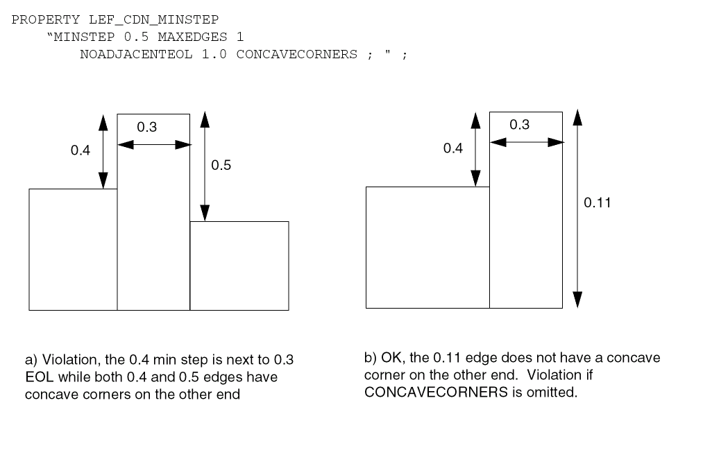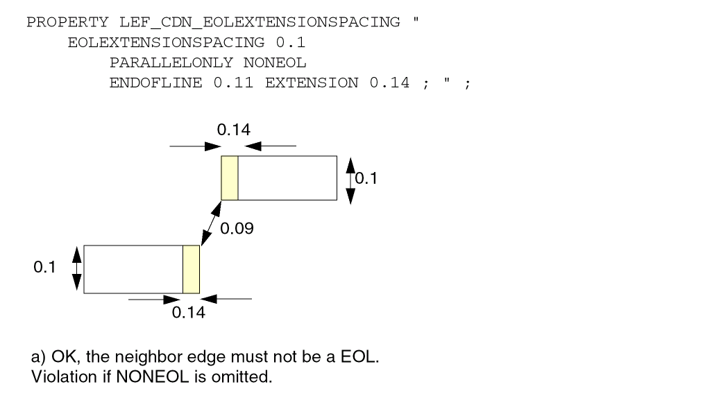 PROPERTY LEF_CDN_WRONGDIREOLKEEPOUT "WRONGDIREOLKEEPOUTedgeExtwrongDirEdgeExtENDOFLINEeolWidthEDGELENGTHminLength maxLength;" ;