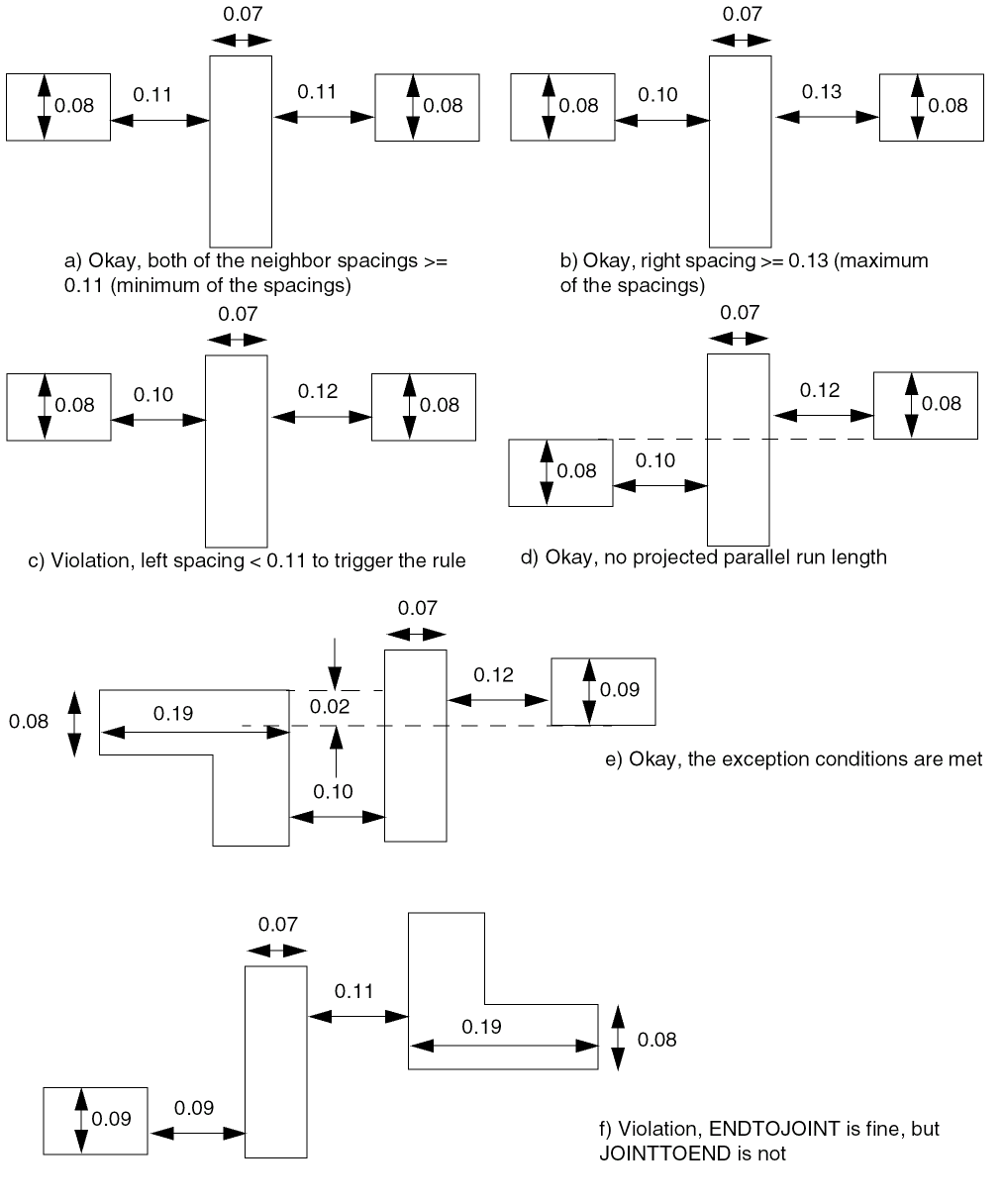Figure 5-172 illustrates the following spacing table rules with