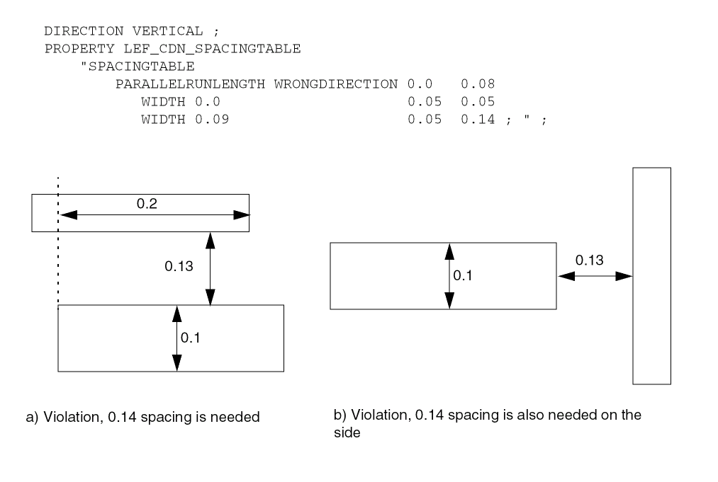 Figure 5-174 Illustration of Spacing Table Rule with WRONGDIRECTION