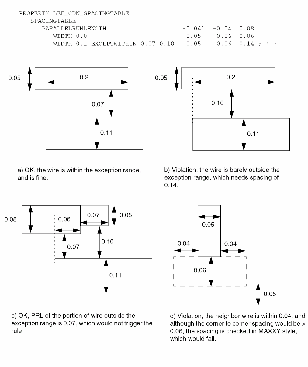 Figure 5-176 Illustration of Spacing Table Rule with EXCEPTWITHIN