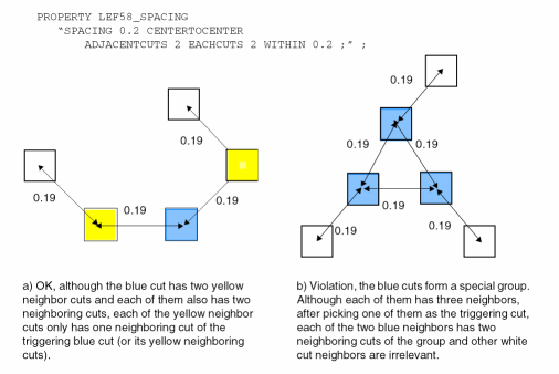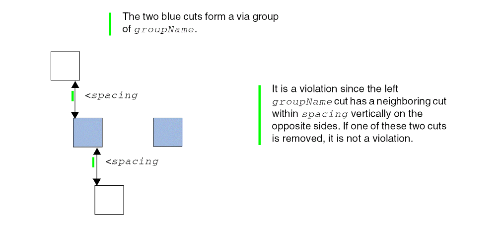 Figure 2-171 Illustration of the Via Group Spacing Rule with MERGEDCUTS