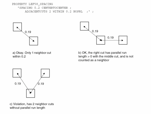 Figure 2-163 Illustration of the Via Cluster Rule with NOPRLSPACING
