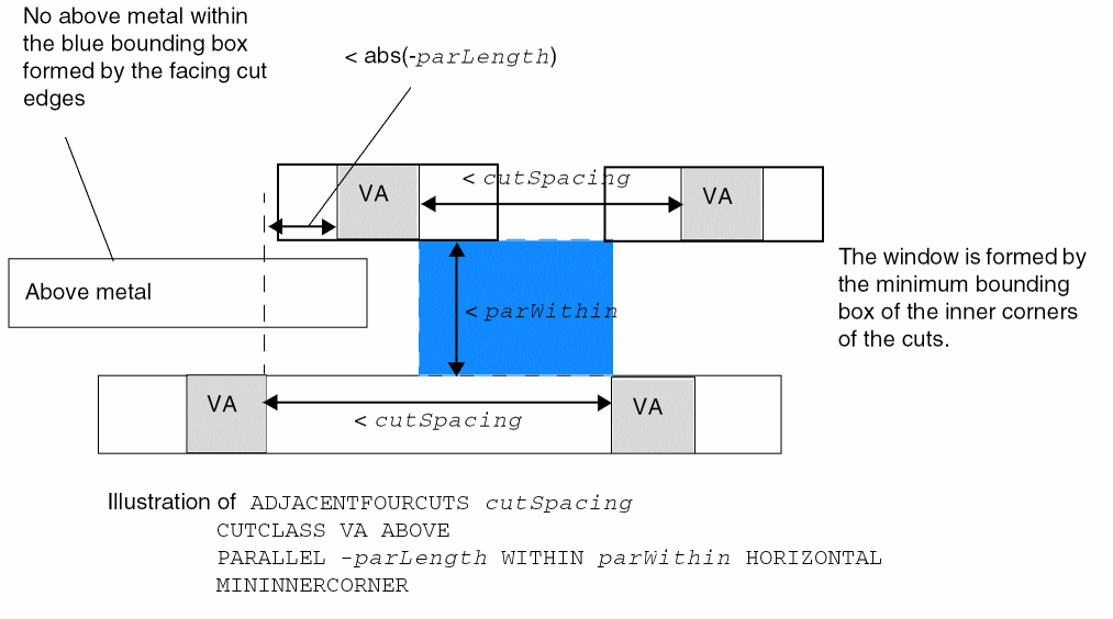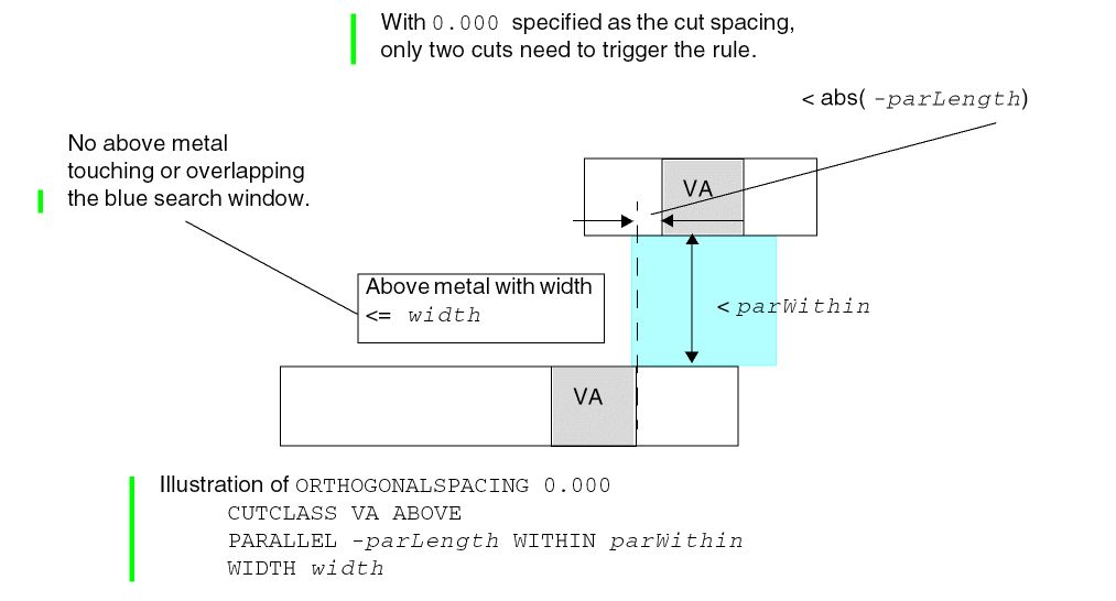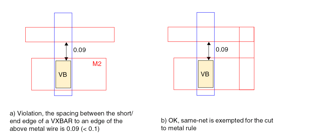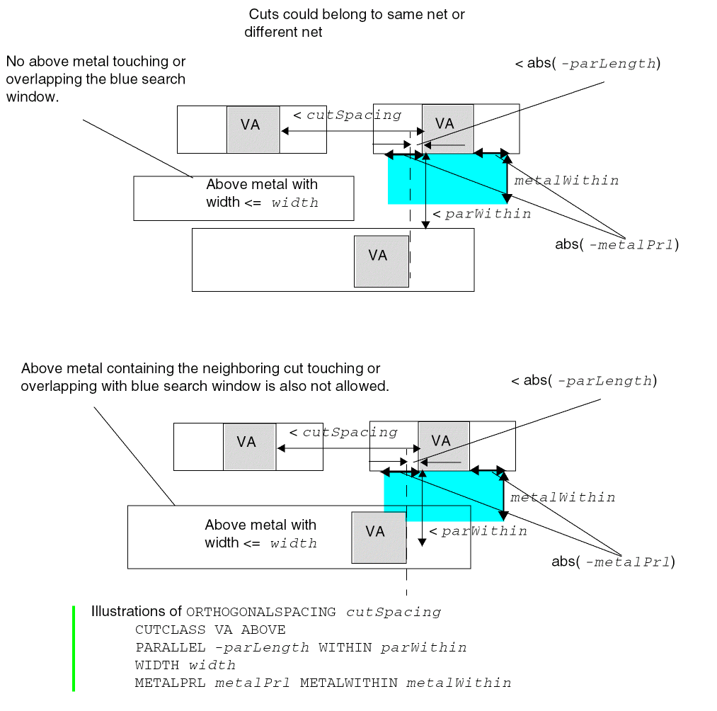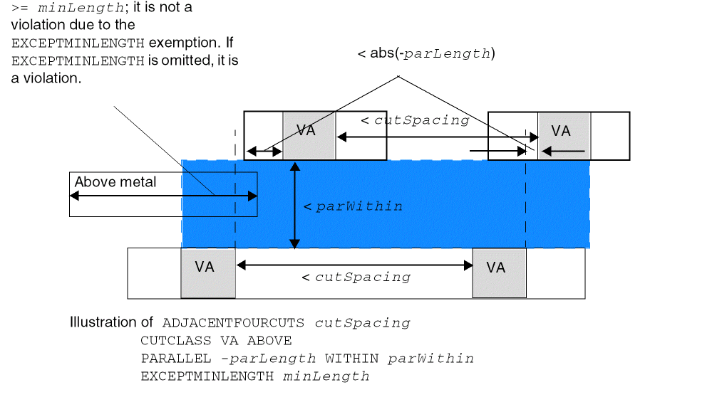 Figure 2-160 Illustration of the Same-Metal Aligned Cuts Rule with CUTWITHIN