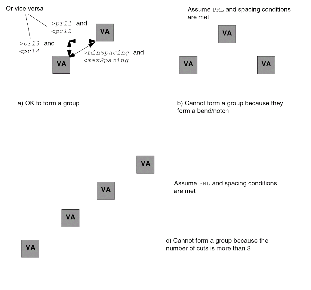 VIAGROUP VGA CUTS 3 CUTCLASS VAPRLTWOSIDESprl1 prl2 prl3 prl4SPACINGminSpacing maxSpacingVIAGROUPSPACINGspacing1VIAGROUP VGA CUTS 3 CUTCLASS VAVIAGROUPSPACINGspacing2VIAGROUP VGA CUTS 2 CUTCLASS VB