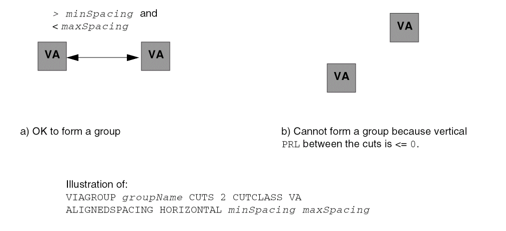 Figure 2-165 Illustration of the Via Group Rule with ALIGNEDSPACING