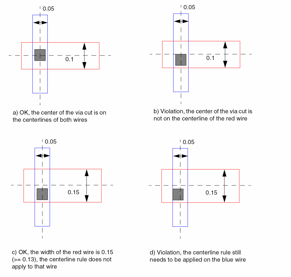 The following example is an illustration of the same-metal aligned cuts rule with a metal neighbor: