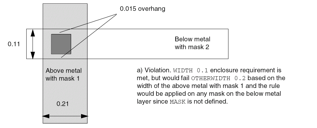 The ratio rules without “DIFF” (the ANTENNAAREARATIO, ANTENNACUMAREARATIO, ANTENNASIDEAREARATIO, and ANTENNACUMSIDEAREARATIO statements), are unnecessary for this layer if ANTENNAGATEPLUSDIFF is defined because a zero diffusion area is already accounted for by the ANTENNADIFF*RATIO statements.