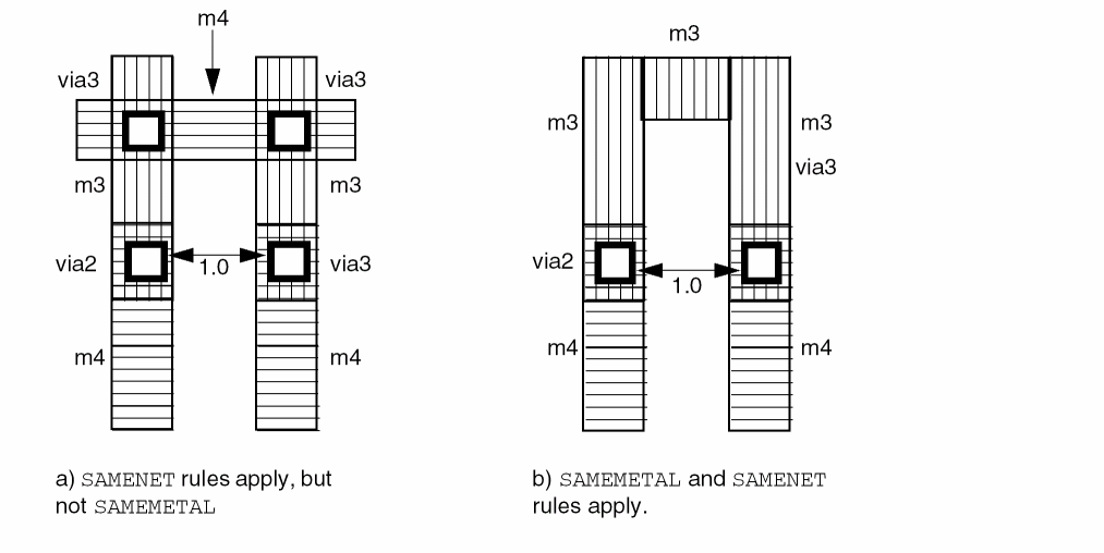 Figure 2-159 Illustration of the Same-Metal Aligned Cuts Rule with METALWITHIN