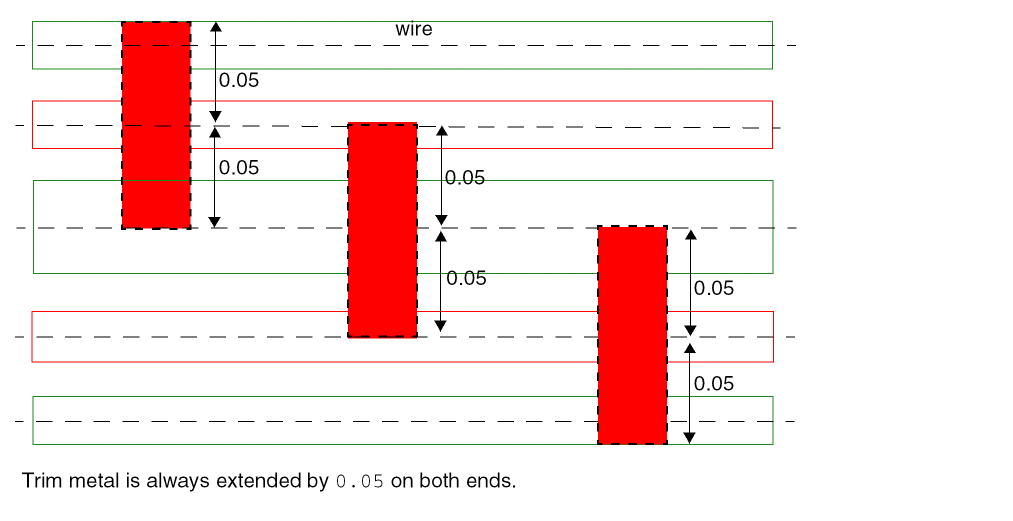 Trim shape rules can be used to specify that shapes on this layer should be formed based on the line-end wires on the metal layer that is trimmed.