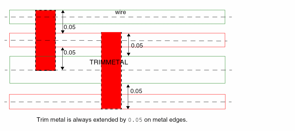 Trimmed metal rules can be used to specify the metal layer that the shapes on the TRIMMETAL layer tries to trim.