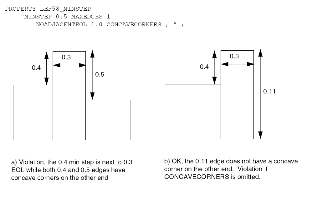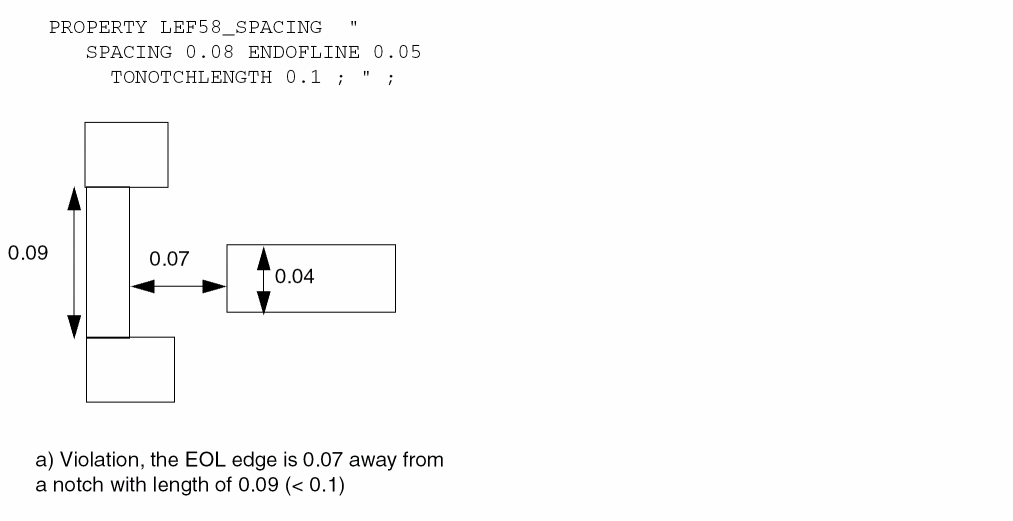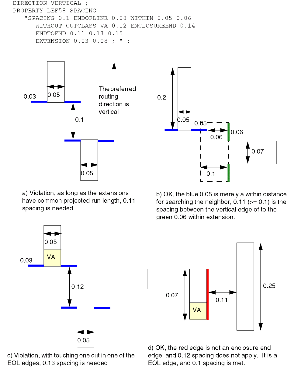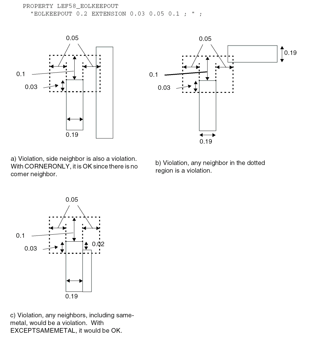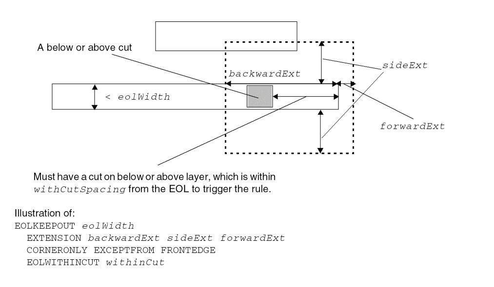 PROPERTY LEF58_WRONGDIREOLKEEPOUT "WRONGDIREOLKEEPOUTedgeExtwrongDirEdgeExtENDOFLINEeolWidthEDGELENGTHminLength maxLength;" ;