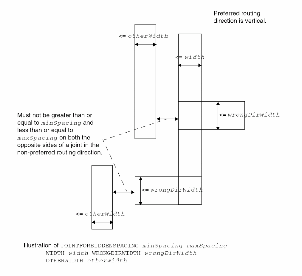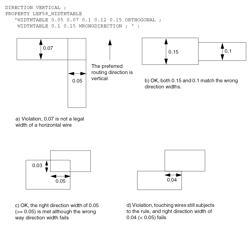Figure 5-185 Illustration of Width Table Rule with ORTHOGONAL and WRONGDIRECTION