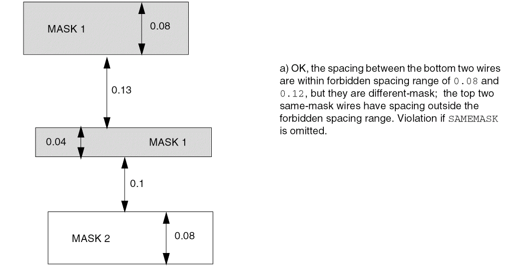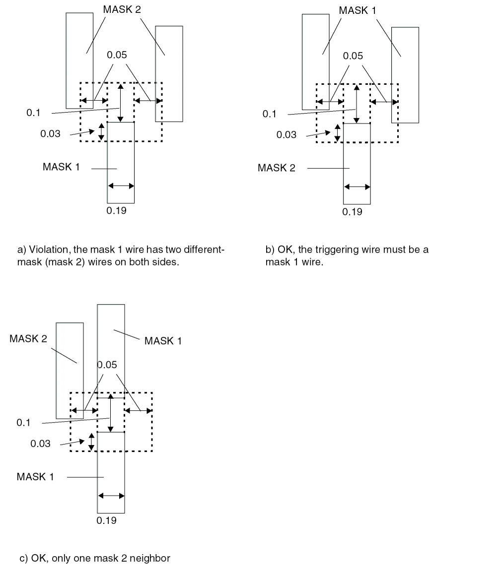Figure 5-183 Illustration of TWOWIRESFORBIDDENSPACING with IGNOREMIDDLE