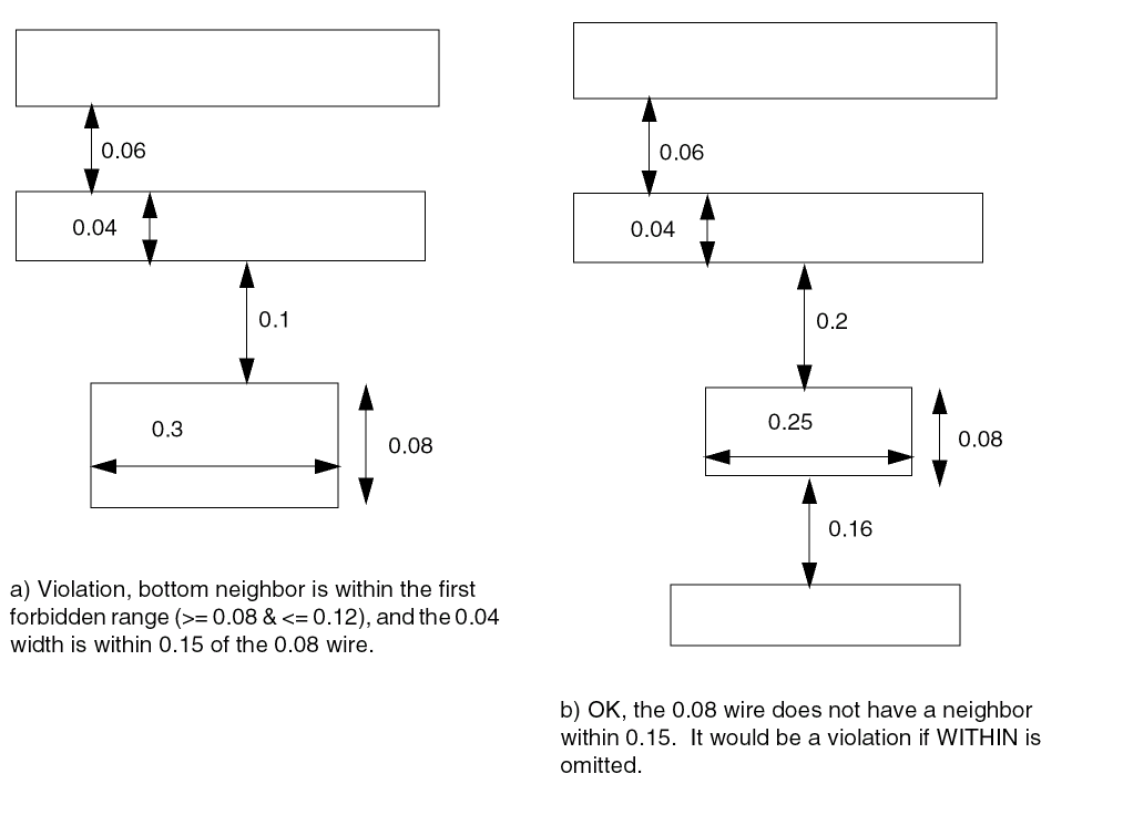 Figure 5-179 Illustration of Spacing Table Rule with EXCEPTWITHIN