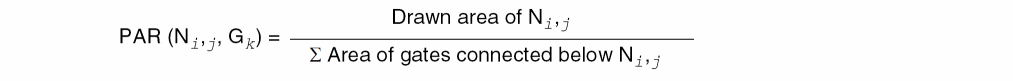 PAR(Ni,j, Gk) is the partial antenna ratio for node j on metali with respect to gate Gk, where Gk is electrically connected to node Ni,j by layer i or below.