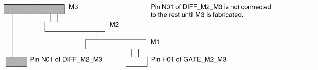 Using this model, you calculate damage to gates by process antennas on one layer. For example, if you use the partial checking model to calculate the PAE referred to a gate from metal3, you do not consider any potential damages referred to that gate from metallization steps on metal1 or metal2.