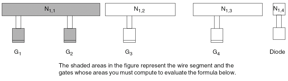 Ni,j, the PAR(Ni,j, Gk) for all gates Gk that are connected to the node Ni,j using metali or below are identical. Calculations for PAR on the First Metal Layer