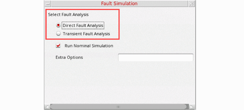Direct fault analysis uses sweep to iterate over the fault list and run the nested child analyses, such as tran, dc, ac, and so on.