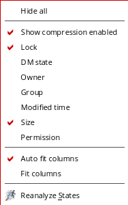 To customize the information displayed in the tree table, right click over the table header of the Libraries section.The following menu is displayed: