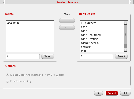 Delete Local And Inactivate From DM System: Deletes a local copy of a library and the copy in the design management repository.