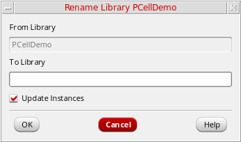For example, with Update Instances selected, an instance of…/projectLib/iopin/symbolis renamed to…/myLib/iopin/symbol. (All instances ofprojectLibare changed tomyLib.) -