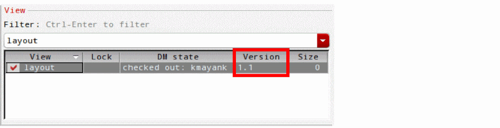 - Notes: Any details about the version. The term Default Version indicates the most recent version checked in by the user. If the user rolls back the cellview or file to a lower version, it is indicated as Default Version.