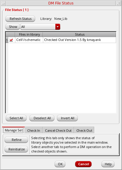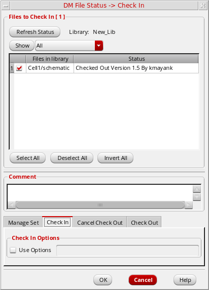 When you perform a check in, check out, or cancel check out from the DM File Status form, a Substitute DM Command message gets displayed requesting confirmation of that action. You can however to choose that you do not want this message to be re-displayed in future. In doing so, the .cdsenv file gets updated and your preference registered for future actions in this area.
