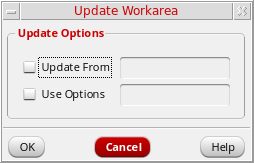 In the Update Options group box, select the Update From check box and type the name of a configuration in the field to update your workarea relative to the specified design management configuration.