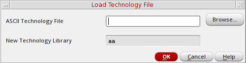 The Load Technology File form appears.Your new library name appears in the New Technology Library field.