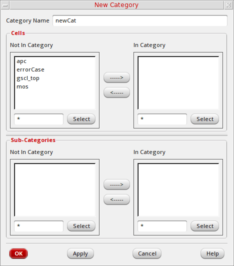 In the Cells group box, in the Not In Category list box, select the cells you want to include in this category.