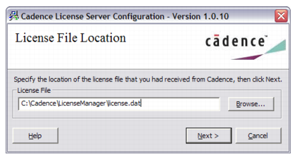 - Specify the location of the license file that you had received from Cadence.